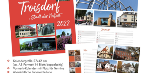 Es ist so weit, der Troisdorf Kalender 2022 ist fertig und kann ab sofort direkt bei Kunstlicht-Lichtkunst erworben werden