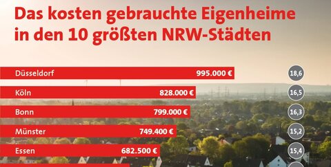 Eine gute Finanzierungsberatung – auch zu den Fördermitteln – wird für Wohneigentumserwerber immer wichtiger, um ins eigene Zuhause zu gelangen. Ein gebrauchtes Eigenheim in NRW kostet durchschnittlich 408.000 Euro.