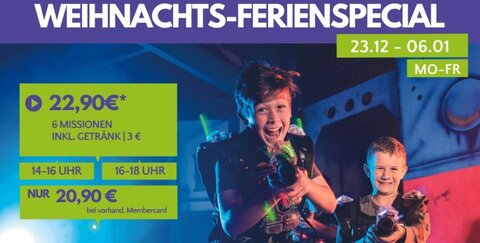 Für nur 22,90€* kannst du volle 2 Stunden Lasertag durchpowern (bis zu sechs Spiele) und zusätzlich bekommst du ein