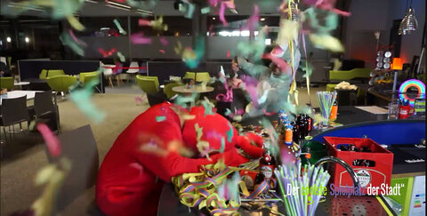... lecker Mädsche & süße Burschen, jecke Musik in der Lounge & in der Spielarea, Partystimmung, Luftballons, Konfettiregen, Einhörner ...