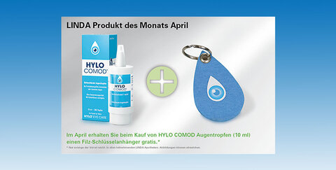 Im April erhaltet ihr beim Kauf von “HYLO COMOD“ Augentropfen (10 ml) einen Filz-Schlüsselanhänger gratis.*.