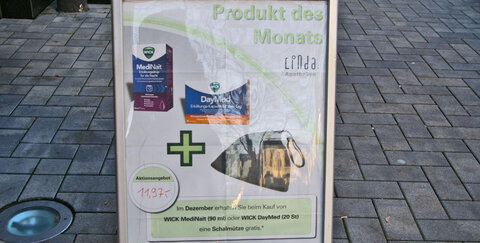 Als teilnehmende LINDA Apotheke bietet die Apotheke am oberen Stadttor jeden Monat ein zur Jahreszeit passendes Produkt aus dem rezeptfreien Sortiment an. Beim Kauf dieses Monatsproduktes erhalten Sie einen Mitgabeartikel gratis dazu.