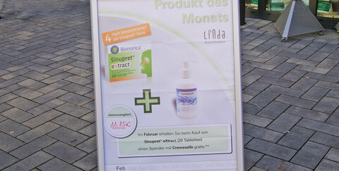 Im Febraur erhaltet ihr beim Kauf von Sinupret eXtract einen Spender mit Cremeseife gratis dazu in eurer Linda Apotheke.