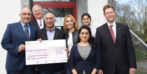 Bei der Scheckübergabe berichteten Dilay Simsek vom Vorstand der Kurdischen Gemeinschaft, Ilkay Yilmaz von der Integrationsagentur für den Rhein-Sieg-Kreis, und Nas Zardoshaw, Migrationsberaterin für erwachsene Zuwanderer in der Kurdischen Gemeinschaft, von ihrer Arbeit in der Flüchtlingshilfe. Neben Deutschkursen werden Kleiderstube, Fahrradwerkstatt und mehr angeboten.