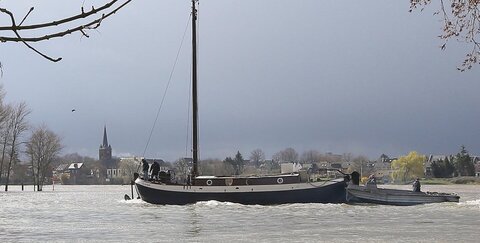 18.03.2019: Aalschokker restauriert: „Maria Theresia“ fährt durch den Auwald an der Sieg