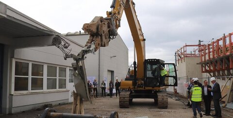 Bauministerin Ina Scharrenbach setzte sich für den Start selbst ans Bagger-Steuer.