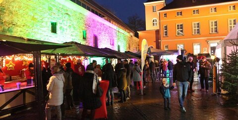 10.12.2021: Bis Sonntag: Weihnachtsmarkt an der Burg Wissem in Troisdorf hat eröffnet