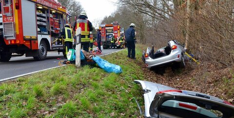11.01.2018: Dach aufgeschnitten: 81-Jähriger schleudert auf Troisdorfer Mauspfad in Graben