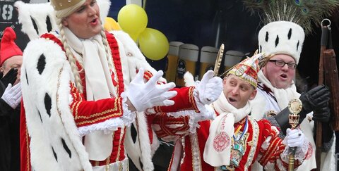 07.02.2018: Dreigestirn Spich: Jungfrau Christin überragt mit 2,18 Metern Prinz und Bauer um Längen