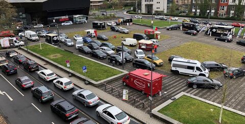 11.04.2021: Drive-in Streetfood: Troisdorfer Markt an der Stadthalle von Besuchern überrollt