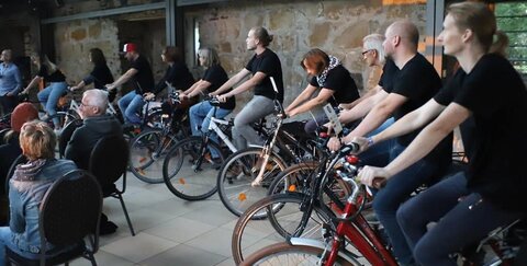 Von zehn Fahrrädern kam die Energie für Beamer und Lautsprecheranlage.