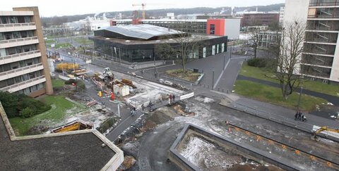 Der Rathausvorplatz nimmt Formen an.