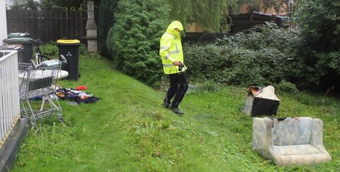 Ein couragierter Besucher löschte die Flammen an einem Sofa.