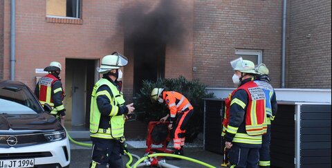 Schwarzer Rauch drang aus einem Fenster im Erdgeschoss eines Wohnhauses.