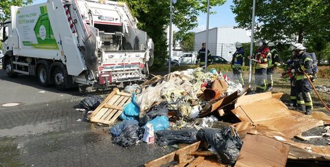 15.07.2022: Müll auf Firmengelände gekippt: Troisdorfer Feuerwehr rückt zu brennenden Müllwagen aus