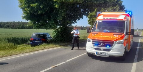 Lebensgefährlich verletzt wurde ein Mann, der ohne Helm eine Kreuzung mit seinem Pedelec überquert haben soll. Ein Rettungshubschrauber ist im Einsatz.