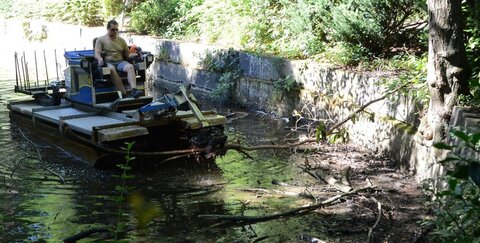 04.07.2018: Teichreinigung in Troisdorf: Mit schwerem Gerät und Mikroorganismen gegen Faulgase