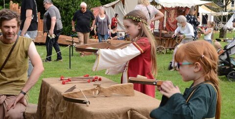 Mittelaltermarkt an der Burg Wissem unterhielt und informierte Familien.