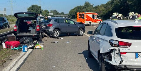 03.09.2021: Unfall bei Spich: Fünf Verletzte auf A59 -; langer Stau in Richtung Köln