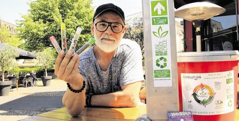 12.06.2019: Weg mit den Kippen: Mario Merella hat recyclebare Eimer für Zigaretten entworfen