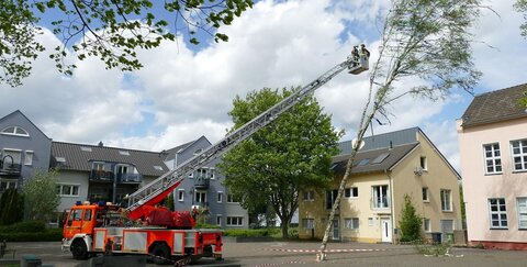 Der 15 Meter hohe Baum drohte auf eine Kindertagesstätte zu stürzen.