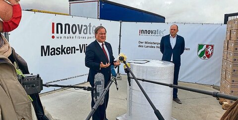 Zu Besuch bei Masken-Vlies Hersteller: Armin Laschet besichtigt Innovatec in Troisdorf