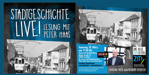 Die Lesung in der Mayerschen Buchhandlung findet statt in Kooperation mit der Zukunfts-Initiative Troisdorf Innenstadt. Autor Peter Haas erklärt: „Angebote einer Innenstadt sollten zeitgemäß sein, damit sie die Menschen anzieht. Doch Modernisierung wird nur erfolgreich sein, wenn sie auf Tradition fußt. Dazu zählt ein behutsamer Umgang mit denkmalwerten Gebäuden. Denn diese stiften Identifikation und machen unser Troisdorfer Zentrum unverwechselbar.“