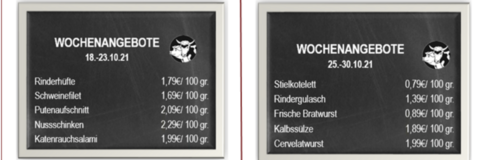 Angebote für die Wochen vom 18.10. bis 23.10. und für den 25.10. bis zum 30.10.21