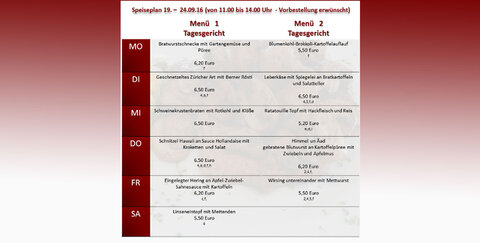 20.09.2016: Mittagstisch KW 38 bei der Metzgerei Kolzem