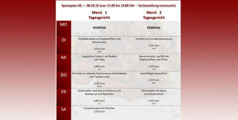 04.10.2016: Mittagstisch KW 40 bei der Metzgerei Kolzem