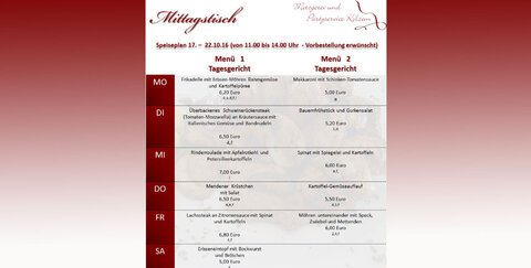17.10.2016: Mittagstisch KW 42 bei der Metzgerei Kolzem
