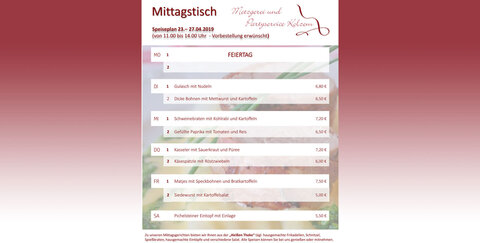 22.04.2019: Mittagstisch bei der Metzgerei Kolzem