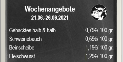 20.06.2021: Wochenangebot bei der Metzgerei Kolzem