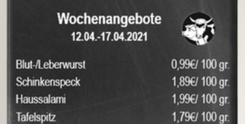 12.04.2021: Wochenangebot bei der Metzgerei Kolzem
