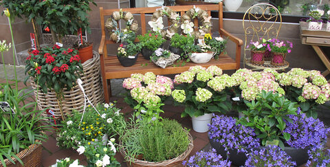 Zum Beispiel Geranien oder Alpenveilchen in rosa oder lila.