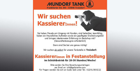 Die Mundorf Tankstelle in der Frankfurter Straße in Troisdorf-Mitte sucht einen neuen Kassierer (m/w)
