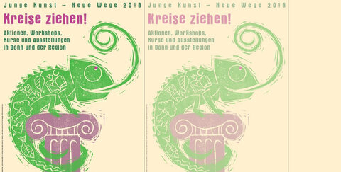 In Aktionen, Workshops, Projekten und Ausstellungen zum Thema "Kreise ziehen!" setzen sich die Nachwuchskünstlerinnen und -künstler in diesem Jahr mit unserem kulturellen Erbe kreativ auseinander. Alle Werke, die die Kinder und Jugendlichen schaffen, werden in zwei Ausstellungen im Künstlerforum Bonn (2. bis 17. Juni) und im Kunsthaus Troisdorf (1. bis 15. Juli) gezeigt. Junge Kunst - Neue Wege startete im Jahr 2016 und ist zunächst auf drei Jahre angelegt. Abschließend wird eine Dokumentation zu dem dreijährigen Kreativprojekt entstehen, das die Kulturlandschaft des Rheinlands in Bezug zu der neu geschaffenen "jungen Kunst" stellt.