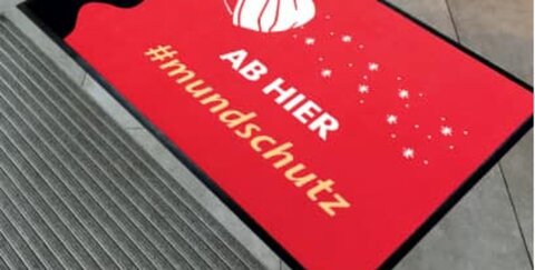 Hinweismatten mit positiver Botschaft und Schmunzeleffekt!Individuell produzierbar, auch mit Logo, ab 1 Stück!