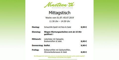 01.07.2019: Mittagstisch im Nineteen'th