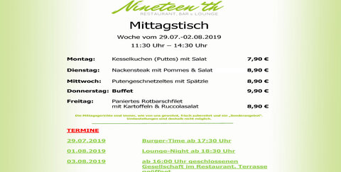 30.07.2019: Mittagstisch im Nineteen'th