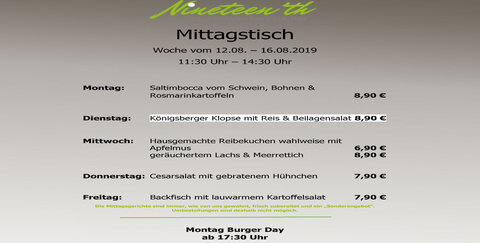 Der Mittagstisch beim Nineteen´th bietet euch täglich wechselnde Gerichte zum Mittags-Sparpreis!
