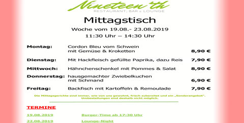 19.08.2019: Mittagstisch im Nineteen'th