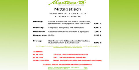 04.11.2019: Mittagstisch im Nineteen'th