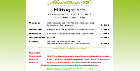 18.11.2019: Mittagstisch im Nineteen'th