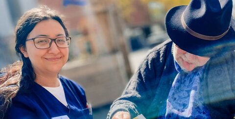 Schwester Jasmina begleitet Nobilis - Bewohner Herrn P. in die Stadt.