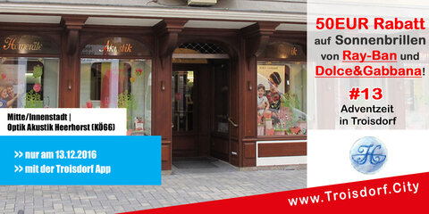 Nur am 13.12.2016, bei Optik Akustik Heerhorst Troisdorf-Mitte/Innenstadt, unter vorzeigen der Troisdorf App!