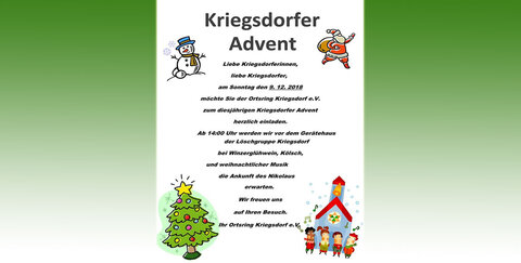 Am 09.12.2018 veranstaltet der Ortsring Kriegsdorf e.V. den "Kriegsdorfer Advent"