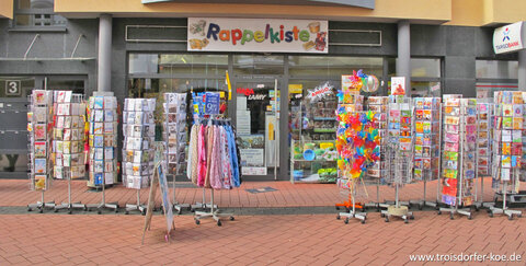 Neben Spielzeug für Babys, Puppen, Gesellschaftsspielen und Autos, gibt es hier schöne Accessoires und originelle Geschenkideen. Des Weiteren bietet die Rappelkiste einen ganz besonderen Service an: Hier können alte Filme digitalisiert werden. Wer kennt das nicht: Schöne Erinnerungen wurden vor vielen Jahren mit der Kamera eingefangen, doch es gibt keine Möglichkeit mehr, sie abzuspielen. Vom Schmalfilm über VHS bis hin zur Mini DV bringt die Rappelkiste die Erinnerungen wieder auf DVD. Selbst LPs und Dias sind kein Problem. Auch Karnevalsjecke kommen hier auf ihre Kosten. Und für Fans des 1. FC Köln gibt es hier eine große Ecke mit Fanartikeln rund um den Verein und natürlich die schöne Domstadt. Ein Besuch lohnt sich.