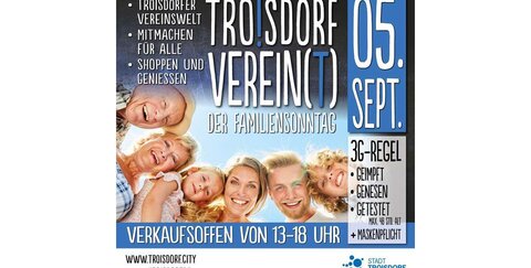Gleich zwei tolle Veranstaltungen an einem Wochenende in der Troisdorfer Innenstadt: Der beliebte Abendmarkt mit 10 Speise- und Getränkeständen am 3. September und die Premiere des Familiensonntags Troisdorf Verein(t) am 5. September. Viel Vergnügen!