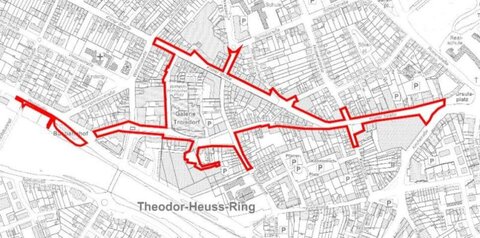 Die Maskenpflicht gilt in der Fußgängerzone. Das Gebiet umfasst Kölner Straße 1-97, Wilhelm-Hamacher-Straße, Wilhelm-Hamacher-Platz, Am Bürgerhaus, Fischerplatz, Hippolytusstraße 1-58, Alte Poststraße, Schloßstraße 2a-7, An der Feuerwache 1 und 1a, Von-Loe-Straße 1, Hospitalstraße 3-9, Kölner Platz und Klevstraße 1-13, Poststraße 71 – 83, Hans-Jaax-Platz (Busbahnhof – ZOB), Poststraße 62 – 66 (Bahnhofseite)